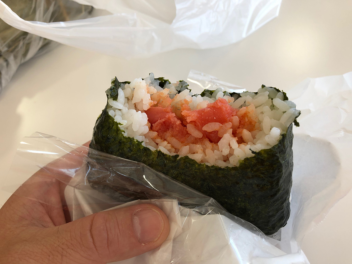 おにぎりは一つ¥380といいお値段だけど、大きさもあるし、これでもかっていうぐらい明太子が詰まっていて納得。