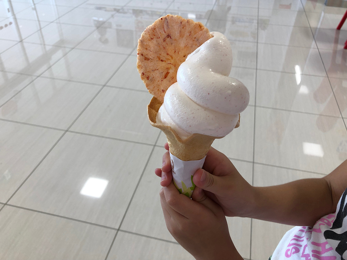 自分は明太子おにぎりと明太豚まん、めんたいソフトクリームをチョイス。