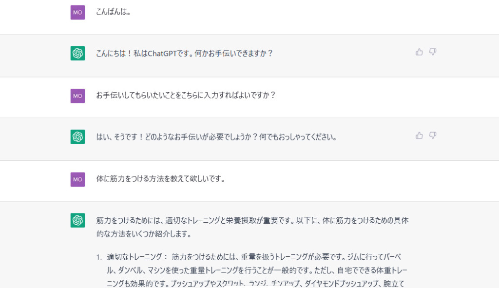 具体的には使い方としては、ユーザーがChatGPTに対して文章を入力すると、ChatGPTは入力された文章に基づいて、自然な形で返答を生成します。ChatGPTは学習データに基づいて自己学習を行っており、複雑な語彙・表現、様々な話題に対しても会話を続けることができます。